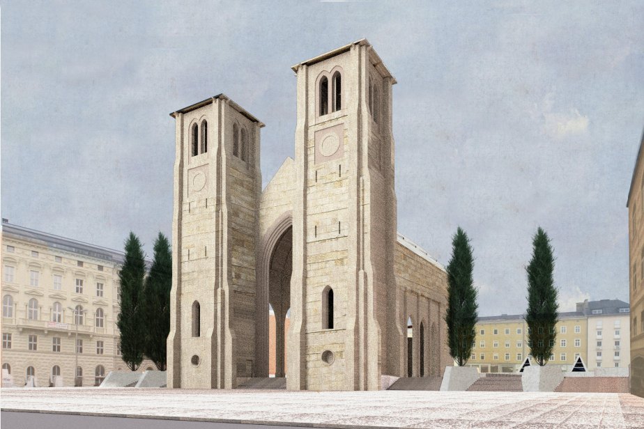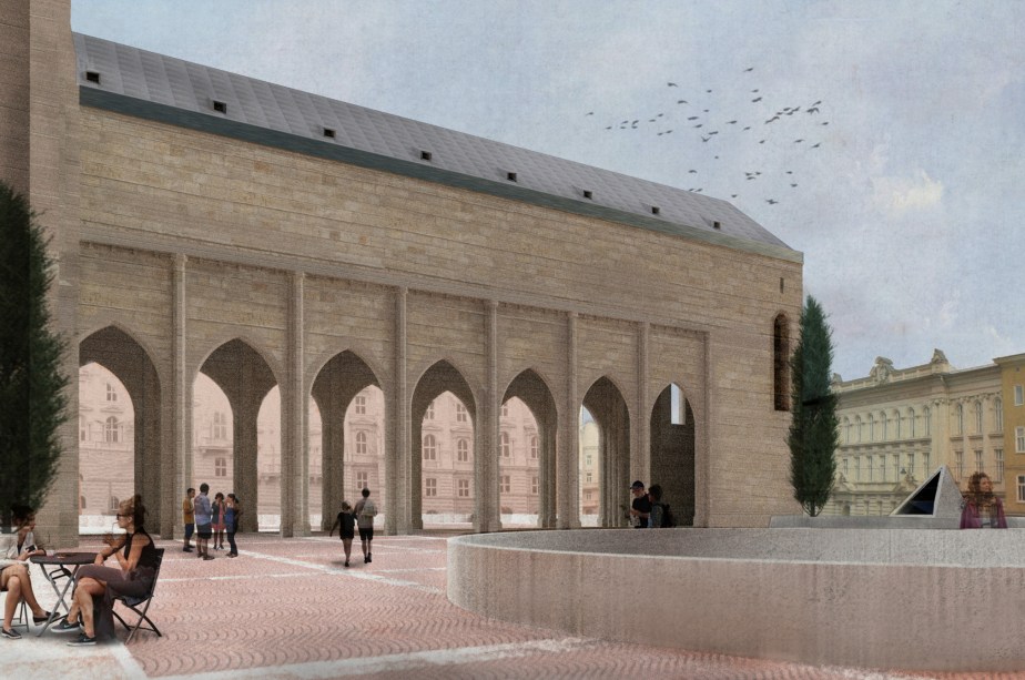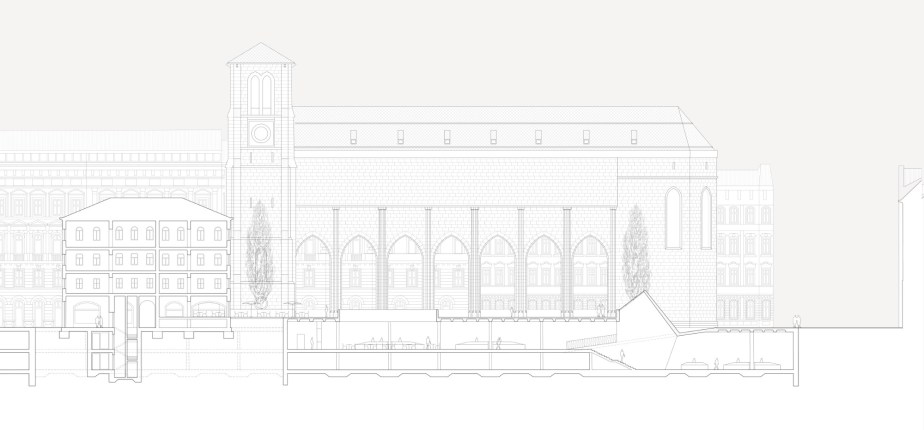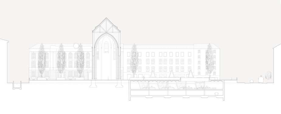A neo-gothic church is re-shaped into a new public space reminiscent of the antique basilicae.
