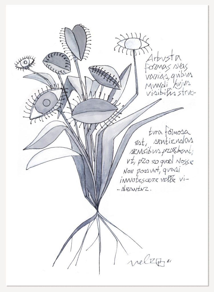 Recently, I stumbled across a doodle I probably sketched during some boring lecture. A carnivorous plant glancing the world for the first time. This reminded me of a passage, where the German thinker quotes a moving paragraph by Augustine.
