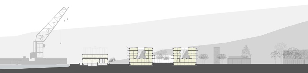 The abandoned storage buildings are given a second life as housing blocks. This project was developped jointly with Giovanni Gandini and Marco Nathansohn.