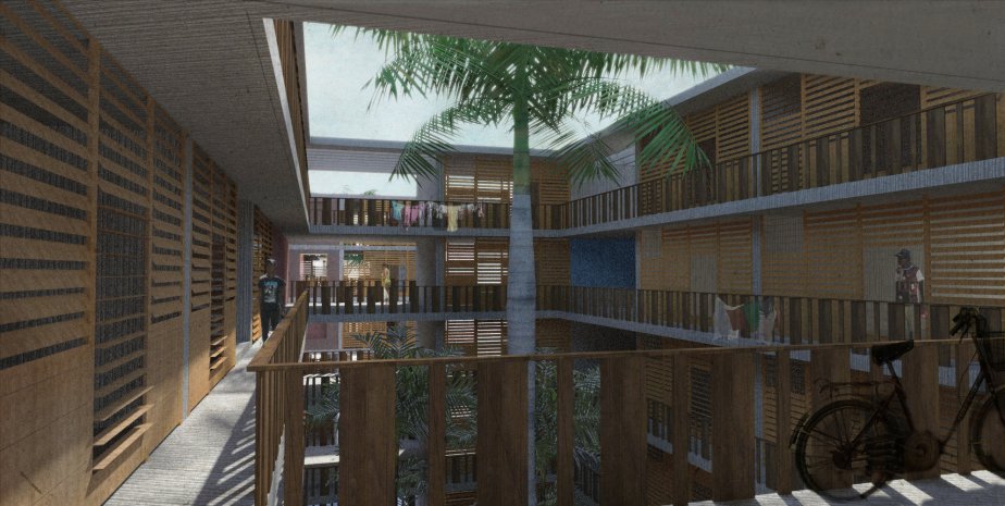 Posto al limite meridionale del municipio di La Habana Vieja, il sito occupa un’area dove si mescolano costruzioni informali, edilizia consolidata e strutture industriali ormai quasi del tutto dismesse. A sud dell’area vi è un importante istituto scolastico e una delle più antiche stazioni della città, oggi scarsamente utilizzata. L’estremità occidentale del sito lambisce il vecchio mercato ortofrutticolo di Plaza de Cuatro Caminos, uno dei nodi viari principali della città che lega La Habana Vieja, il municipio di Centro Habana, il distretto industriale che si affaccia sulla baia e il sud della città. Il progetto si inserisce in un tessuto urbano consolidato e decide di lavorare con le preesistenze in modo pacato e puntuale: partendo dallo studio delle tracce urbane presenti nell’area, l’intervento mira a completare il tracciato viario esistente e ad estendere il tessuto circostante, rafforzando gli assi viari principali. La circolazione principale si distribuisce in direzione est ovest, prolungando all’interno del sito l’asse di Puerta Cerrada; lungo l’importante Avenida de España si completa il sistema di portici che caratterizza la strada, offrendo ai pedoni una lunga passeggiata coperta che conduce direttamente alla Plaza de Cuatro Caminos. Le strade laterali, che tagliano in direzione nord-sud il sito, sono pensate come strade di quartiere, in cui il traffico è limitato ai soli residenti. Qui si aprono gli ingressi alle abitazioni, strutturate intorno ad un sistema di patii e corti: due le principali matrici che offrono una grande varietà tipologica e una pluralità di cortili interni, diversificati per dimensioni e utilizzo. L’impianto tipologico non viene imposto rigidamente, ma si assesta su una struttura prefabbricata in grado di adattarsi alle leggere inclinazioni del tracciato viario, disegnato per prolungare in maniera naturale la trama esistente. A completare l’intervento, viene ripensato tutto il comparto prospiciente la piazza, che diviene un importante luogo pubblico di questa parte di città. Qui, infatti, oltre all’ex mercato ortofrutticolo in fase di riconversione, vi si affacciano la vecchia stazione, riconvertita a museo, e una nuova torre di uffici e residenze che si relazione con il sistema di edifici alti che punteggia tutta l’avenida Padre Vareda, importante arteria viaria che collega il mare e il Malecon direttamente con il cuore della baia.
